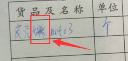 如图11所示,填写货名及名称一栏时,信息表示不清晰。