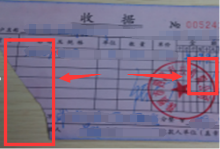如图3、图4所示,供应商盖章的问题有:1.章没盖全;2.章盖全,但是模糊不清;3章盖在收据字上面,导致字看不清楚。
