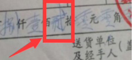 • 8、合计数需要写人民币大写金额,大写金额需要能够清晰的识别,如:合计金额为10009,则需填写壹万零仟零佰零拾玖元,不可以填写壹万-仟-佰-拾-玖元,中间的零不可用横线代替;例如:大写的“叁”写的不规范,写成了“参”,则不符合要求;再例如大写的“贰”多写了一“丿”,即为错别字,同样不符合要求;